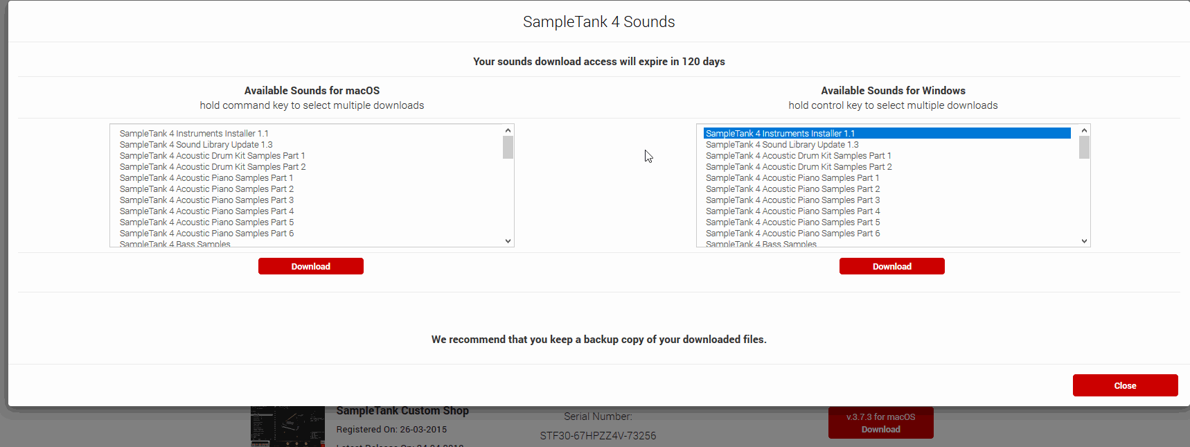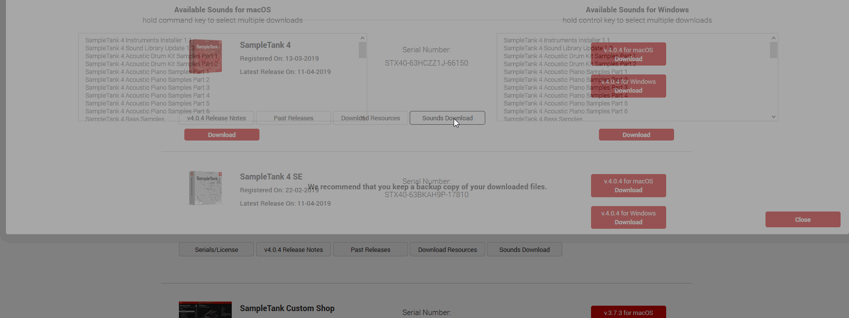 2. Download your files. Under your product's title find the three different pieces for SampleTank 4 to operate properly.