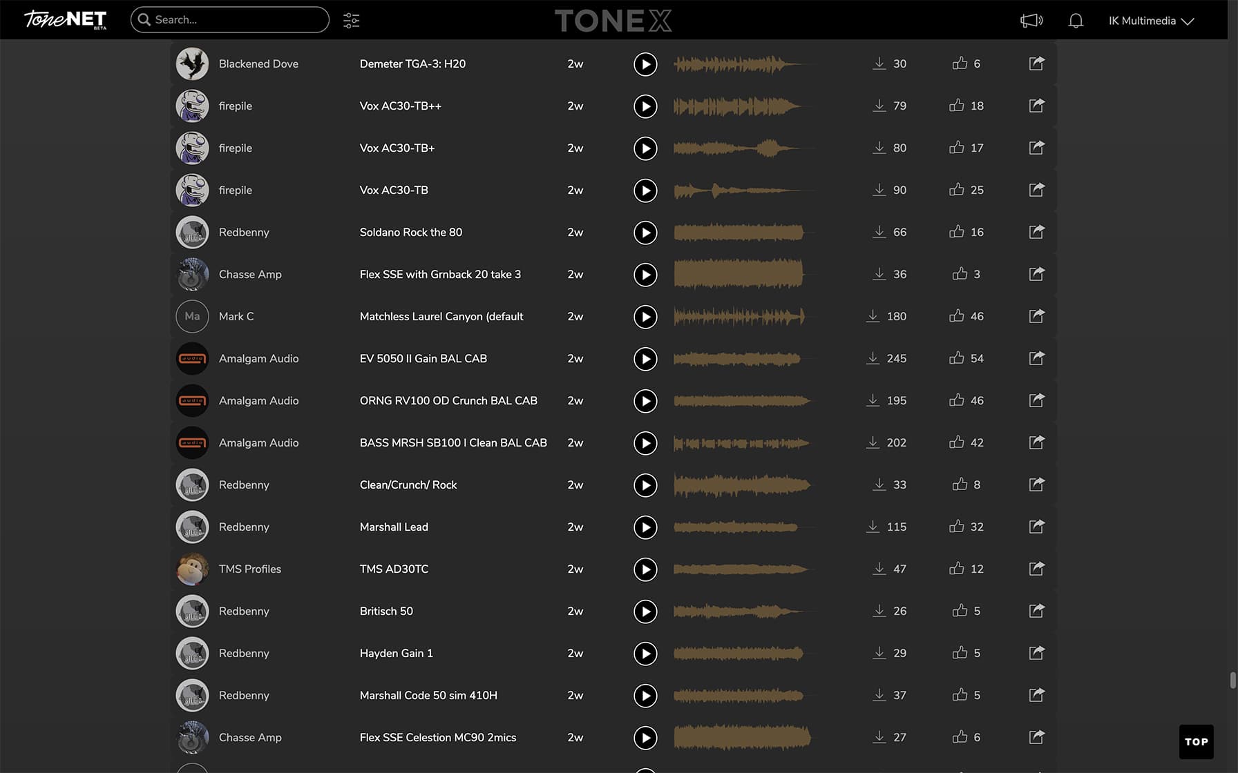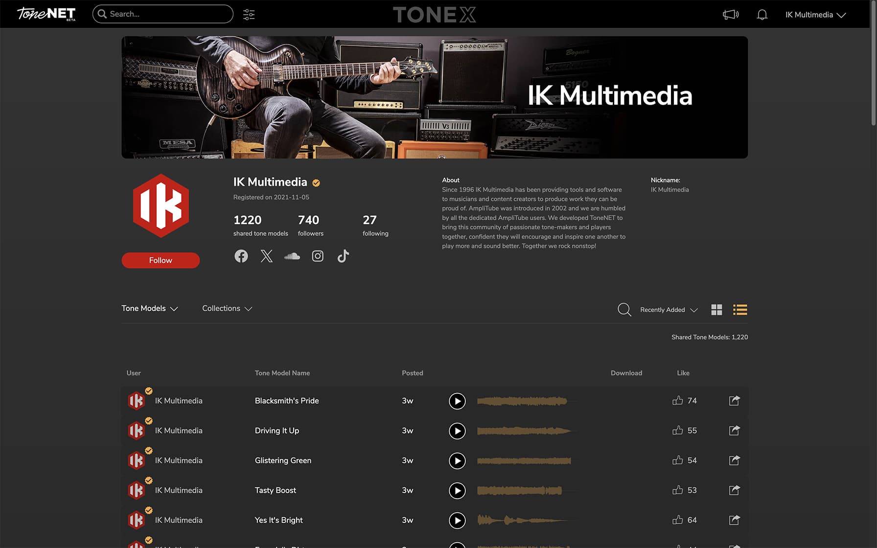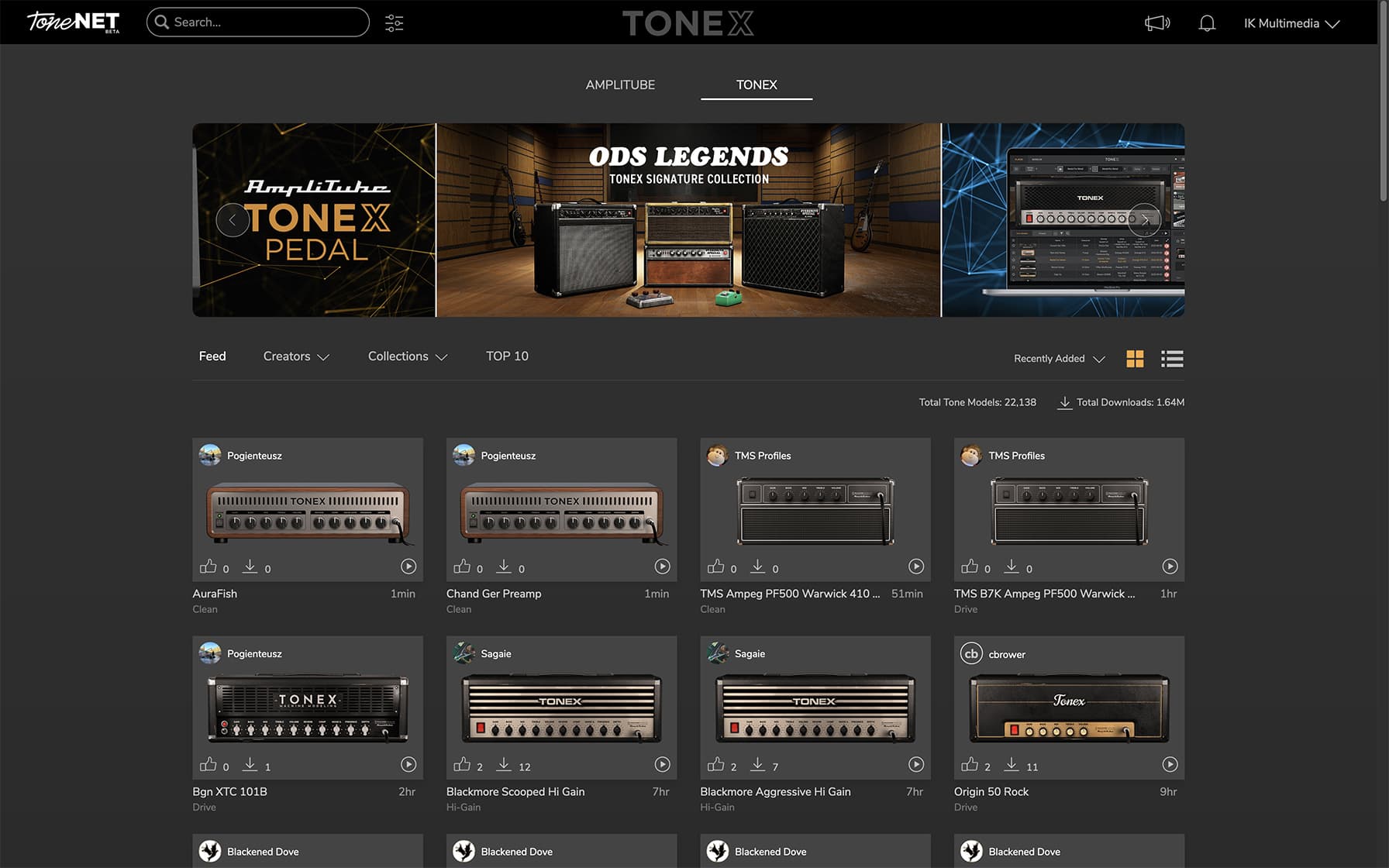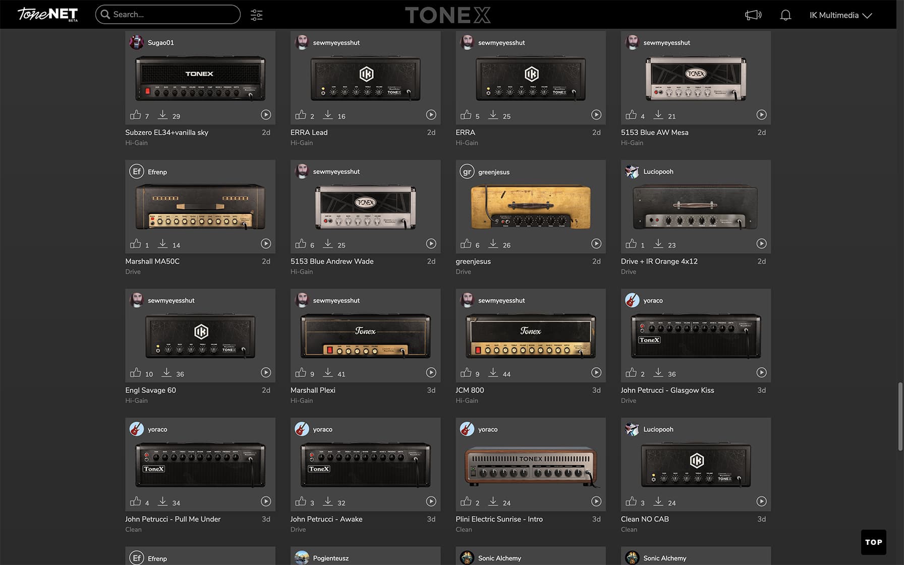 Thousands of Tone Models are available in the new TONEX section in ToneNET, IK’s online tone-sharing platform for AmpliTube.