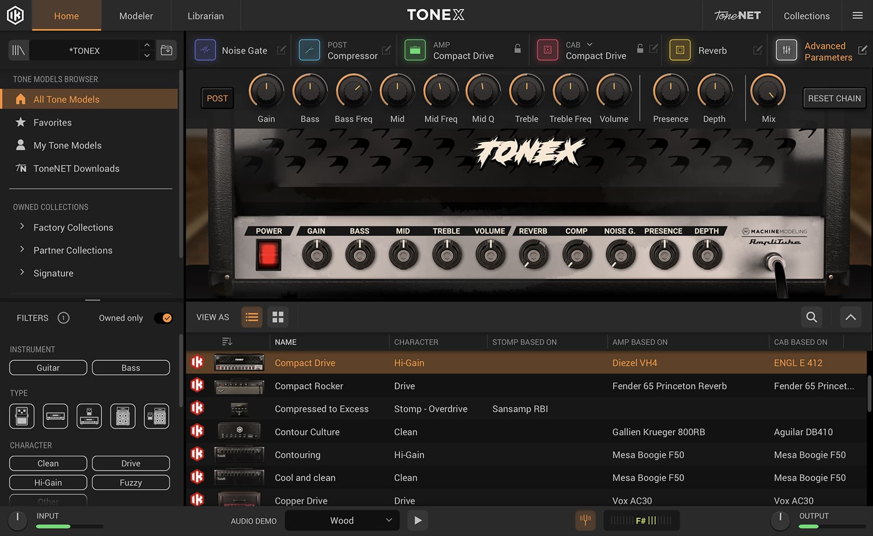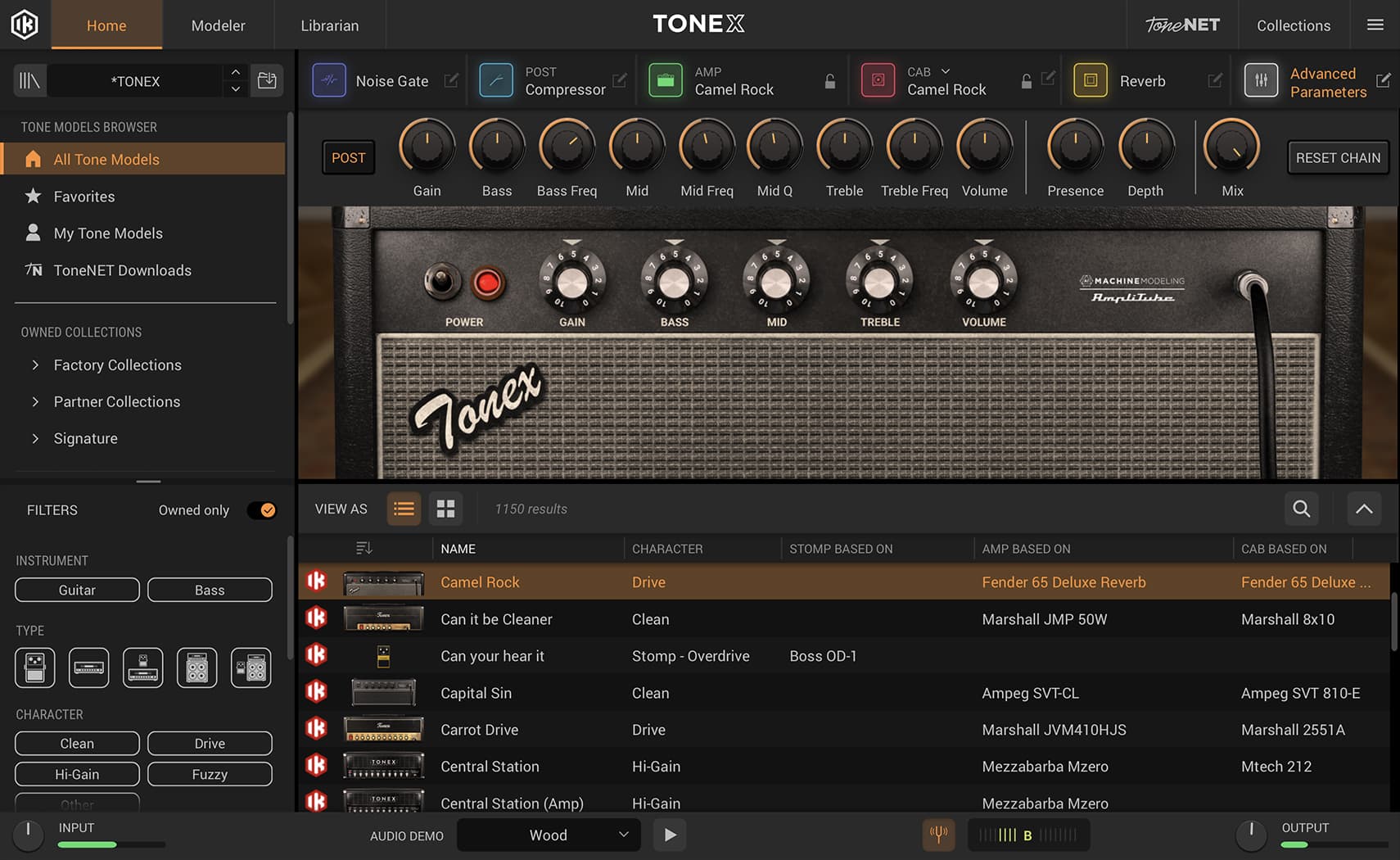 Tone Models function just like other AmpliTube amplifiers, cabs or pedals. They can be used alongside any gear models you own to build custom signal chains and save as presets for easy recall and sharing on ToneNET.