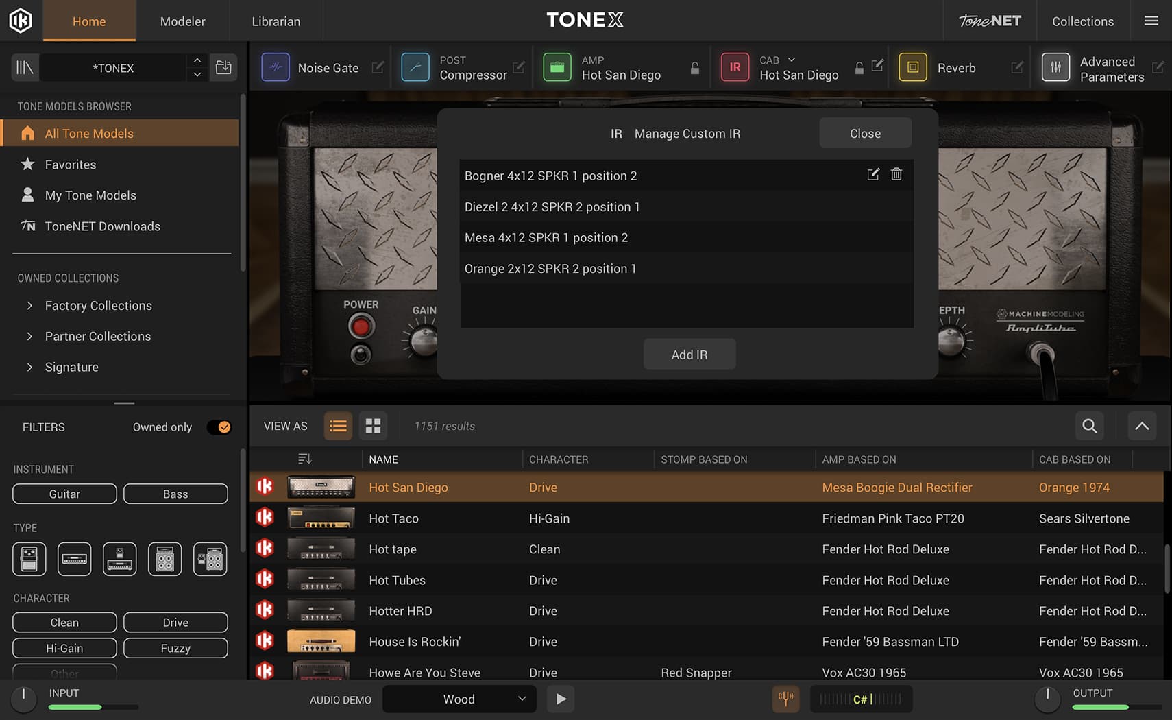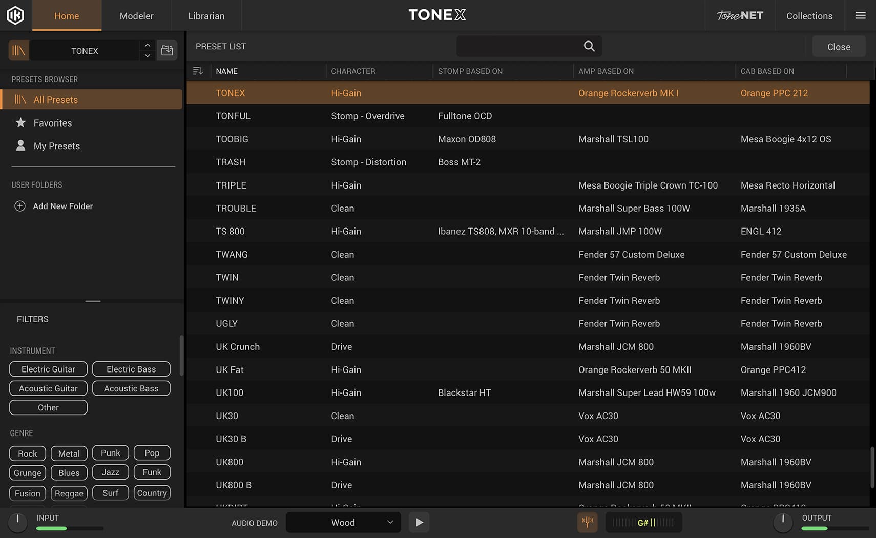 TONEX 1.5 offers a redesigned interface to effortlessly manage all of your Tone Models, preset and, premium TONEX Collections. Improvements include a revamped navigation system, user-friendly smart folders, enhanced filter options, drag-and-drop Amp or Cab Tone Models and much more. The update is free for all TONEX users including CS via the IK Product Manager.