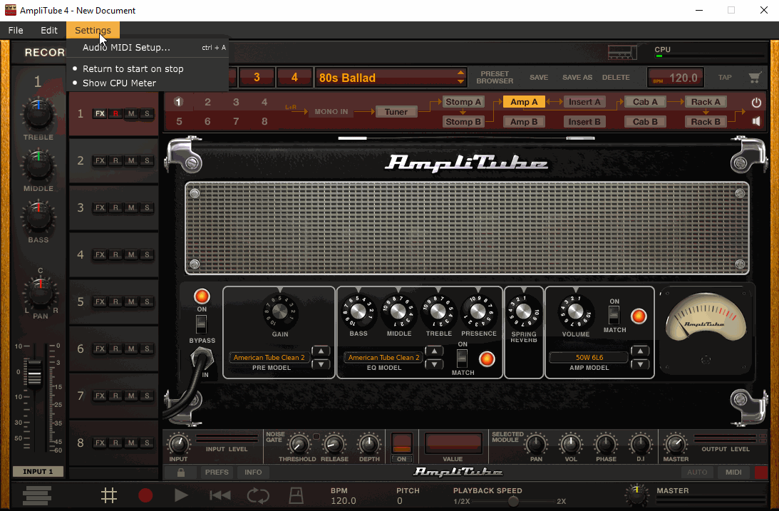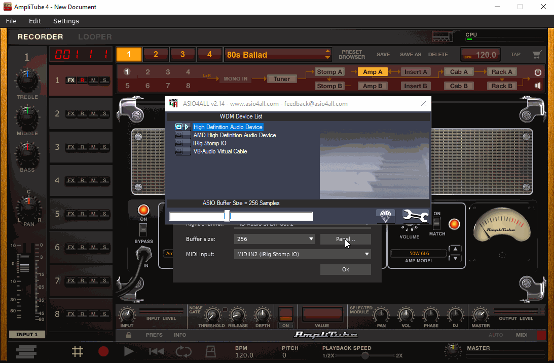 - Go to the Audio/MIDI Set Up under Settings in AmpliTube 4 to select ASIO4ALL as your audio input and output device.