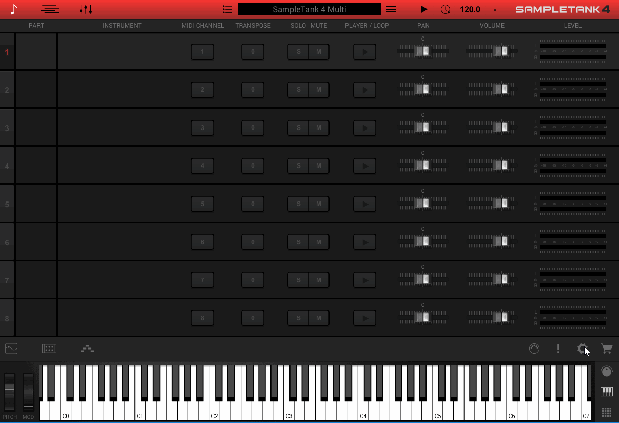 Once established, SampleTank 4 will scan the sound content database. If you had set up a new sound content directory, it will appear empty for now - until you install sound content.