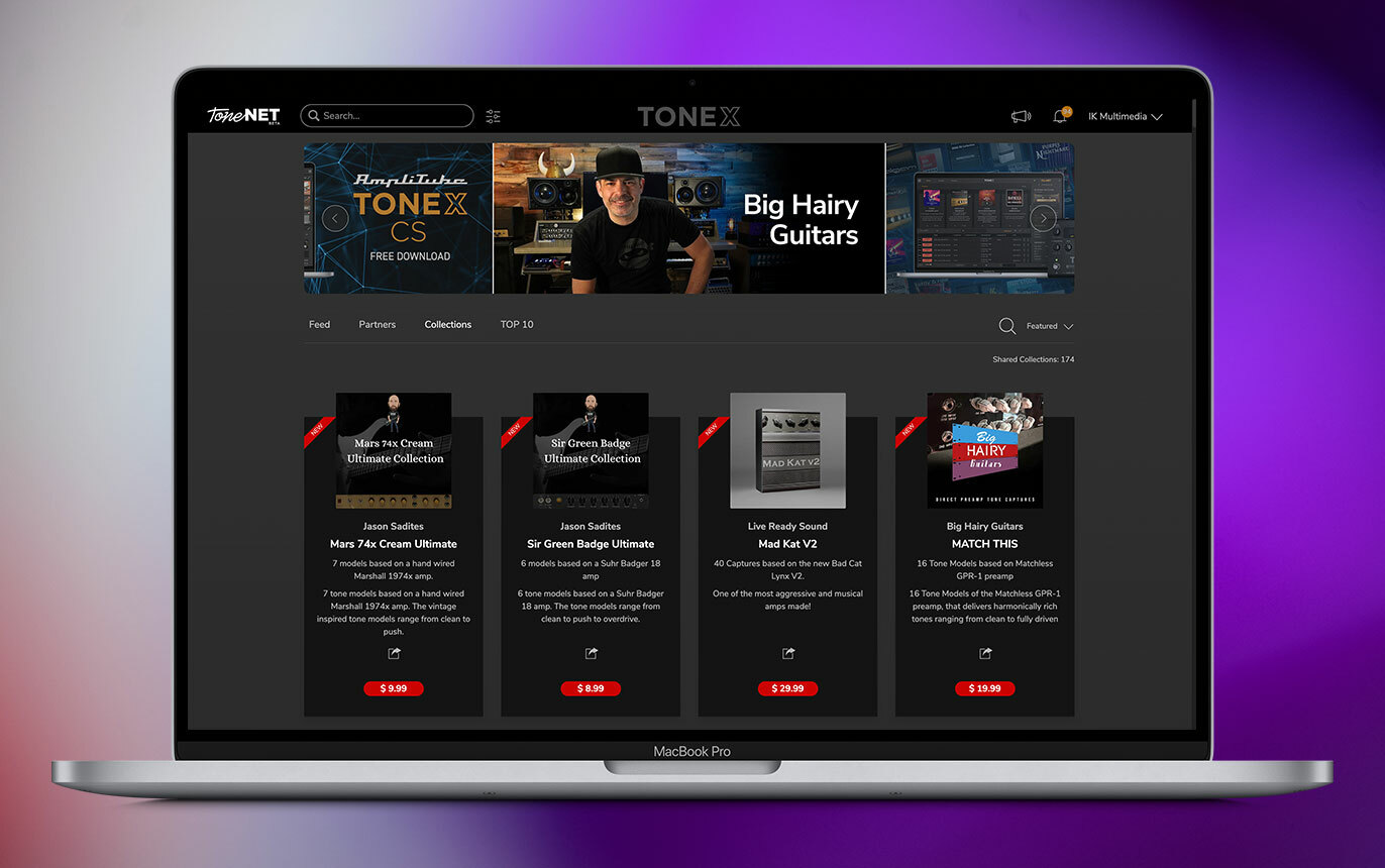 Tone Partner Collections can be browsed and purchased via ToneNET, IK’s online tone-sharing and social platform, or within any version of TONEX Mac/PC including the free TONEX CS. After purchase, Tone Partner Collections become activated inside TONEX software by selecting “Restore Purchases” in the Account panel, which instantly downloads all collection Tone Models to the user’s local library ready to play.